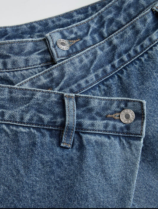 Pantalón de Mezclilla Wide Leg con Pretina Cruzada