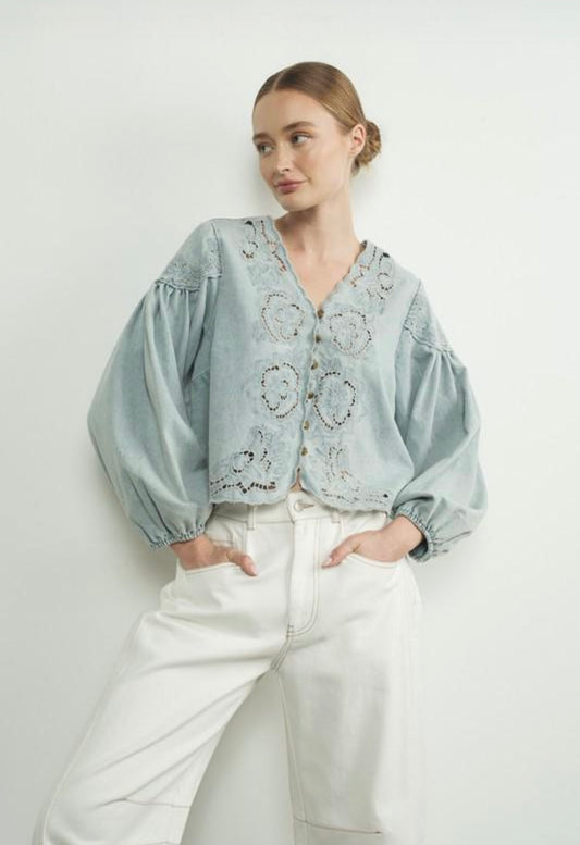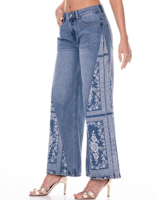 Pantalón de Mezclilla Wide Leg con Pretina Cruzada