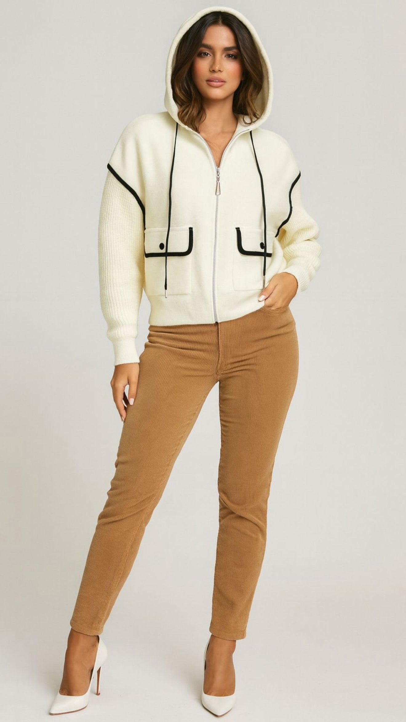 Chamarra Casual con Capucha y Bolsillos con ribete en contraste